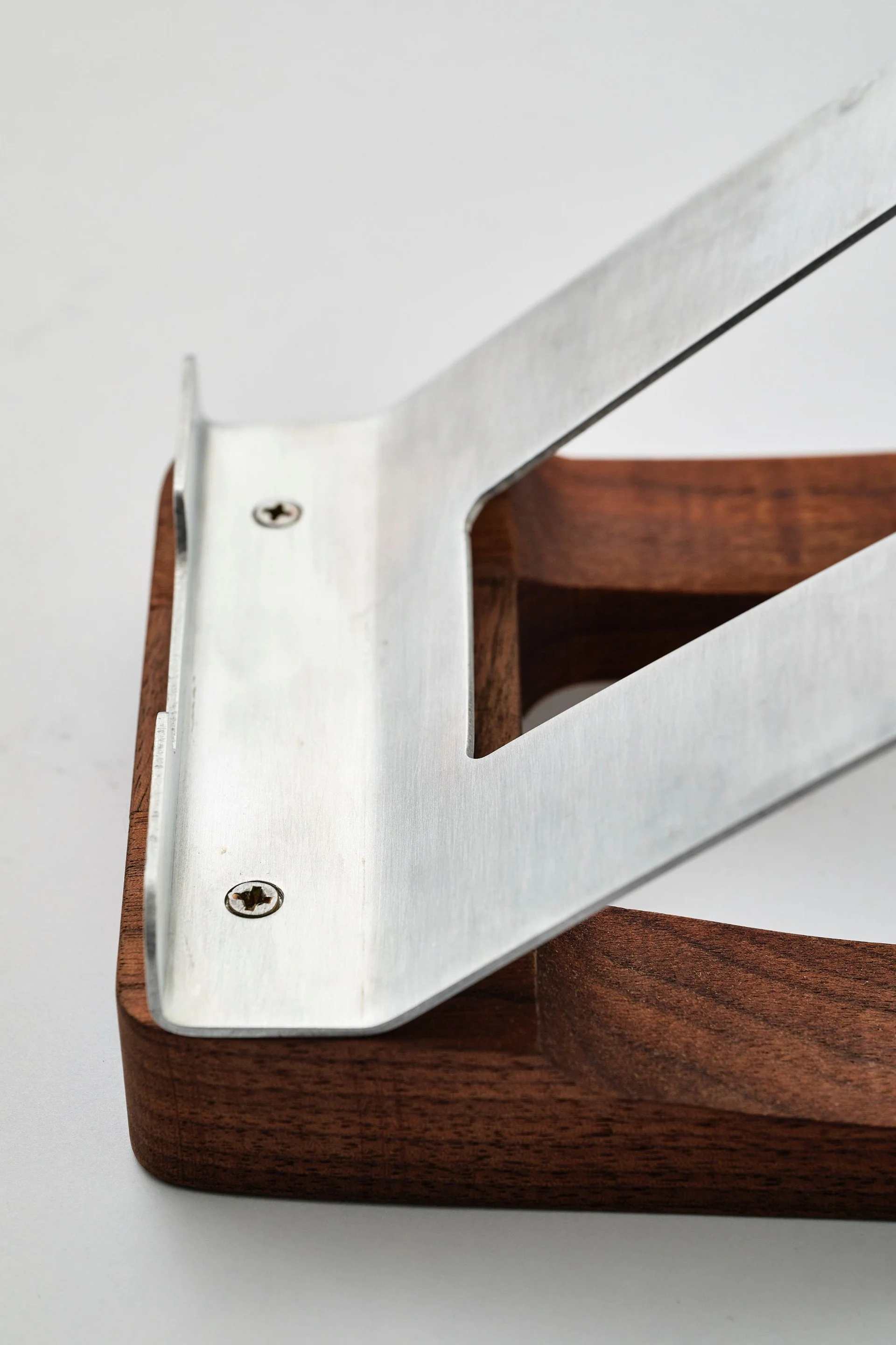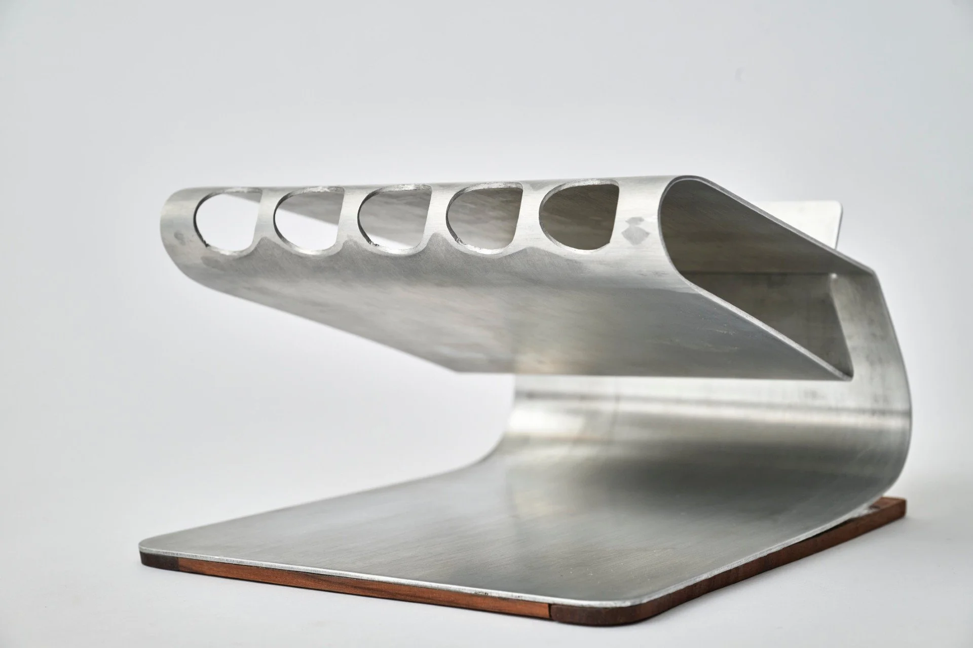 Slot is a thoughtfully designed product, crafted from a single piece of sheet aluminum that's plasma-cut and folded into shape. It's paired with a simple walnut base, providing a non-scratching contact surface. This project marked my first hands-on experience with plasma cutting and working with sheet metal. Through the construction process, I gained valuable insights into the benefits and limitations of plasma cutting, as well as the material properties of aluminum.